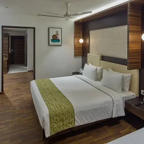 The Royal Suite at Grand Continent, Hosur offers 420 sq. ft. of elegant space, perfectly designed to host up to four guests in comfort. With refined interiors, ample room to unwind & premium amenities, it provides an ideal blend of style & convenience for a truly memorable stay.