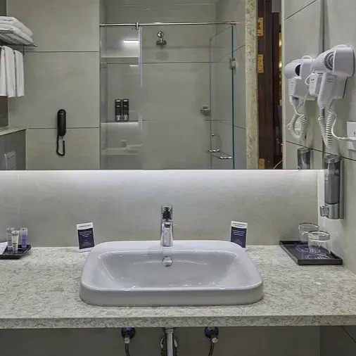 The Family Room at Grand Continent, Hosur offers 420 sq. ft. of well-appointed space, comfortably accommodating up to four guests. Designed for both Comfort and functionality, it’s the perfect choice for families or small groups seeking a relaxing and convenient stay.