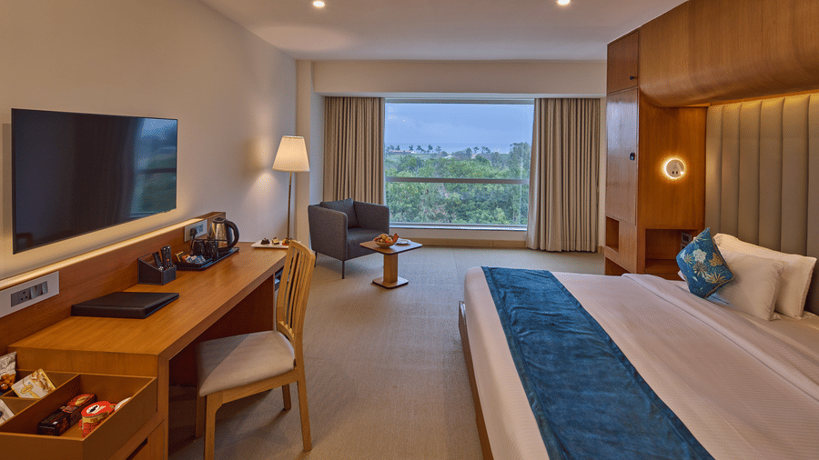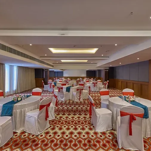 Grand Continent Mahabalipuram offers three versatile event spaces – The Boardroom, perfect for intimate meetings; Mandapa, a banquet hall that can be split into two smaller venues; and Rathas, an open lawn for up to 200 guests, ideal for scenic outdoor celebrations.