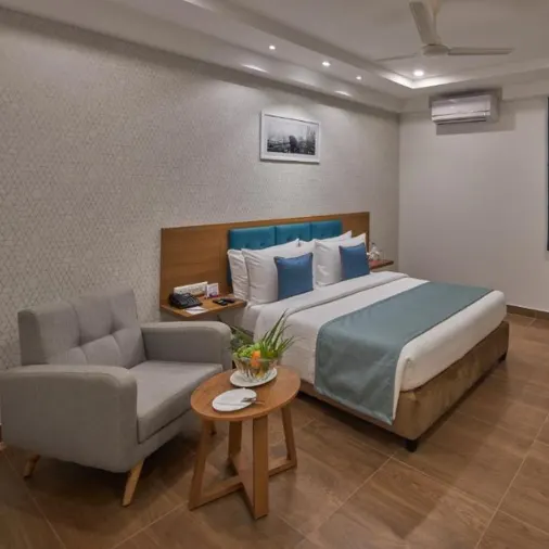 Our Executive and Deluxe Rooms are thoughtfully designed for relaxation and convenience, featuring plush bedding, high-speed Wi-Fi, smart TVs, minibars, work desks, and modern bathrooms. Guests can indulge in delicious regional and international dishes at our elegant multi-cuisine restaurant, unwind with refreshing drinks at the bar, stay active at our fully equipped gym, or host impactful meetings in our state-of-the-art conference room. Whether you’re here for business, leisure, or a bit of both, Regenta Inn Grand Koramangala combines style, connectivity, and warm hospitality to make your stay truly memorable.
