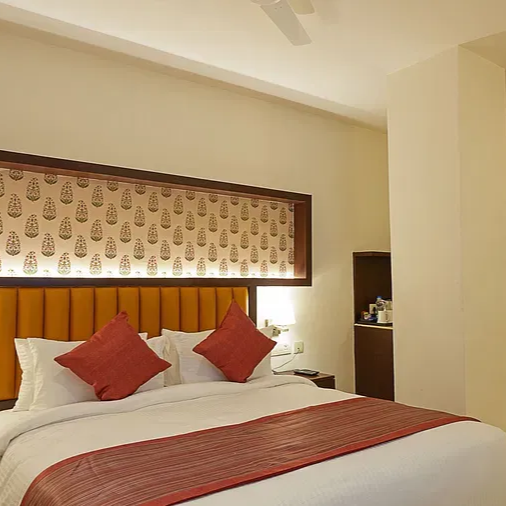 Experience comfort in our Deluxe Room (Double) at Grand Continent, Secunderabad. Our room offers 297 sq ft. of space, accommodating up to 2 adults and 1 child. The room features a plush king-size bed and modern amenities, including air conditioning, in-room dining, room service, high-speed Wi-Fi, a minibar, and more. The contemporary decor adds to the charm of your stay near Secunderabad Railway Station.