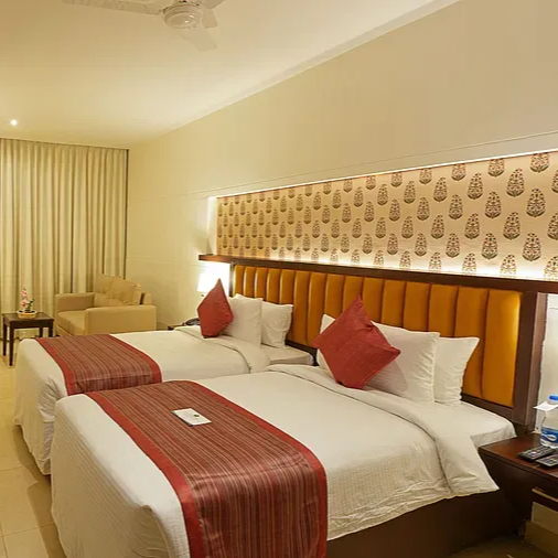 Our Deluxe Room (Twin) at Grand Continent, Secunderabad, provides a comfortable retreat covering 287 sq. ft. and accommodating up to 2 adults and 1 child. Our room features twin beds and modern amenities, including air conditioning, in-room dining, room service, high-speed Wi-Fi, a minibar, and more. The tasteful decor adds to the charm of your stay in Secunderabad.